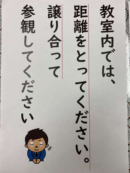 明日17日(木)は1、2年生の学習参観、懇談会です。新型コロナウィルス感染拡大防止のため、参観票と入校許可証の両方を必ず持参ください。なお、各家庭1名です。ご協力よろしくお願いします。