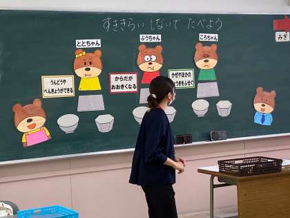 まだまだ苦手な食べ物が多い1年生ですが、なんでも食べて強い身体をつくったり、病気に負けない抵抗力をつけたりしましょう!
