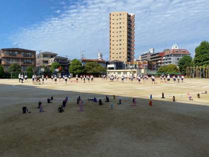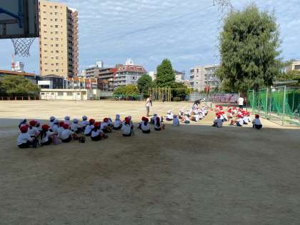 豊新スポーツフェスティバルに向けて1年生もはりきっています。競技だけでなく、座る場所の確認や座る時の練習もしています。