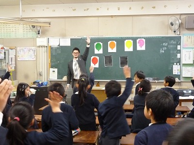 4年生と同様に約2週間に一度の割合で、校長戦略予算でネイティブの講師を派遣し、外国語活動を進めていきます。