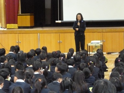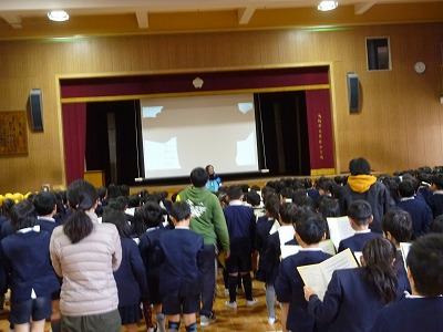 3時間目は、全学年が講堂に再び集まり、阪神・淡路大震災のことをよく御存じのN先生から詳しい話を聞きました。