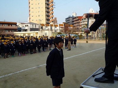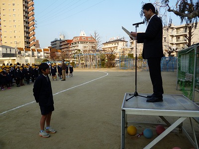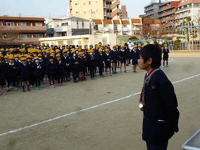 今朝の全校朝礼で、地域のサッカーチームで活躍した児童の紹介をしました。