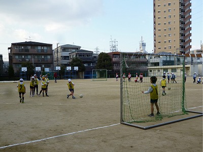 子どもたちは4チームに分かれてのシュート練習をしていました。