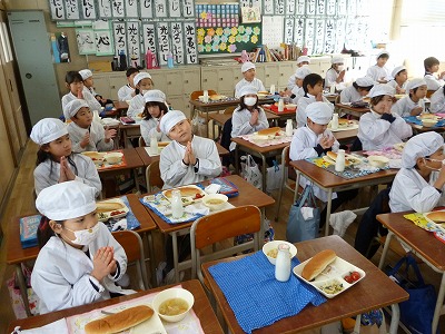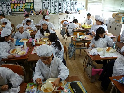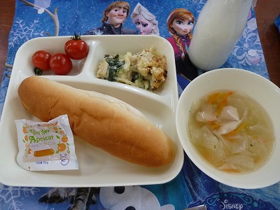 ホタテ貝の大きな切り身がたっぷりと入ったグラタンは子どもたちに大人気でした。