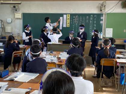 校内で授業研究会を実施しました。読み取ったことから、自分達の町、豊新の町について話合いました。