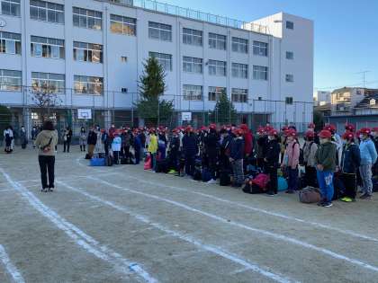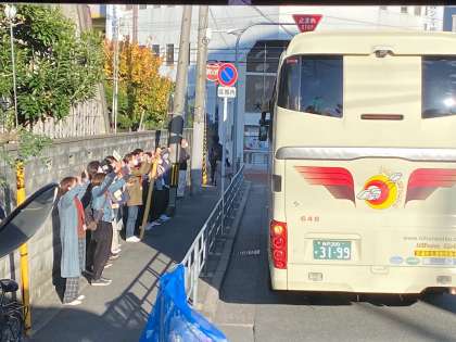 手作りの『いってらっしゃい』の黄色の旗が揺れています。ありがとうございます。