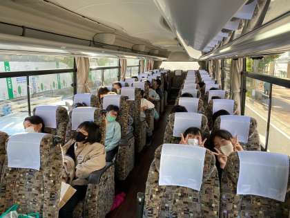 静かに楽しく小声で歌いながら・・・。バスは吹田市内から新御堂、千里へ向かっています。