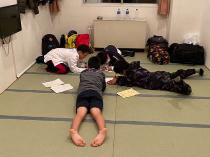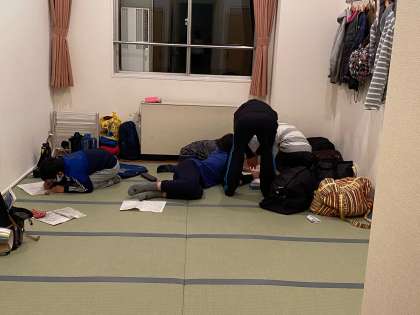 雨のため予定が変わりました。入浴で身体を温めた後、お部屋で思い思いにゆったり過ごしています。