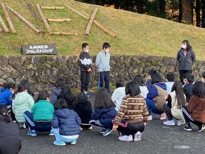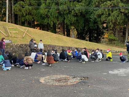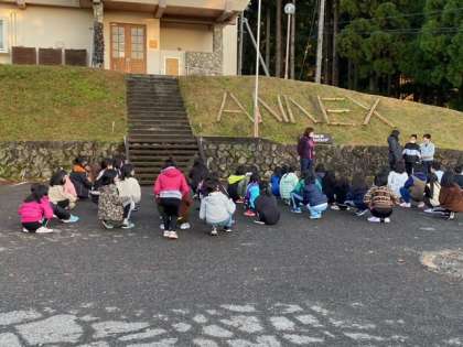 氷ノ山の、朝日に白く輝く山頂をながめる子ども達。この時期ならではです。
