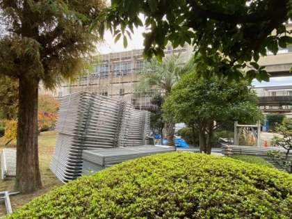 講堂の工事が始まりました。しばらくの間、ご不便をおかけします。安全に気をつけながら実施しますので、ご了承ください。