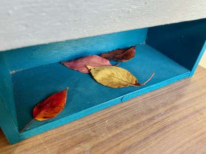 「運動場で秋を見つけたので、校長先生に見てもらおうと思い、これ(色づいた落ち葉)を入れました。」