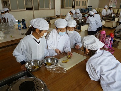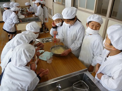 2年生は、今日と明日の2日に分けて、生活科の授業の一環で、「サツマイモのむしパン」作りに挑戦です。
