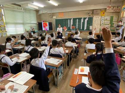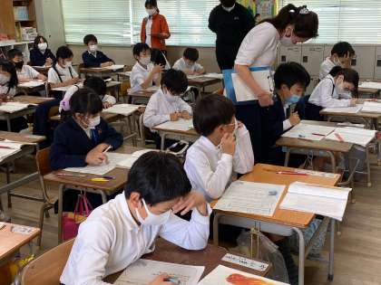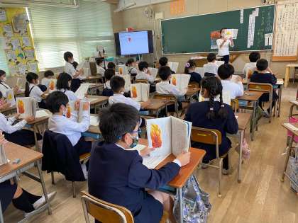 元気いっぱいの三年。作品展の絵の勢い同様、授業にも勢いを感じました。