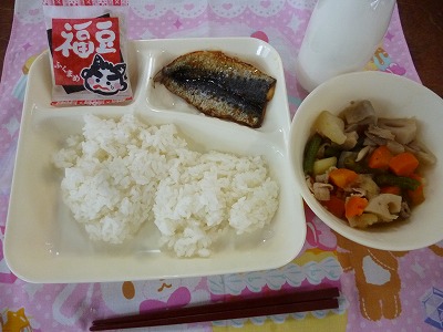 今日の給食メニューは節分の行事献立で