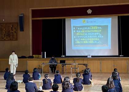 NTTドコモの方、人権擁護委員の方に来ていただき、スマホや携帯電話の安全な使い方について学習しました。