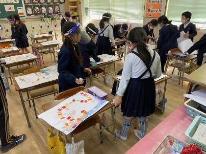 何やら歓声が聞こえてきます。お話をもとに『すごろく』ができあがりました。