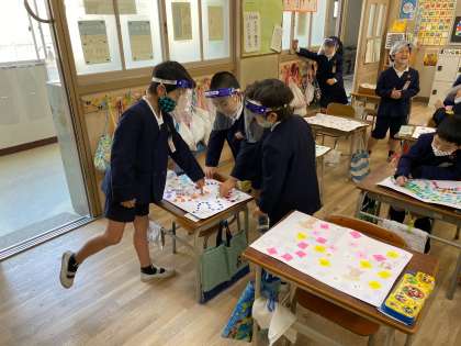 自分たちで作ったすごろくを友だちと楽しみます。
