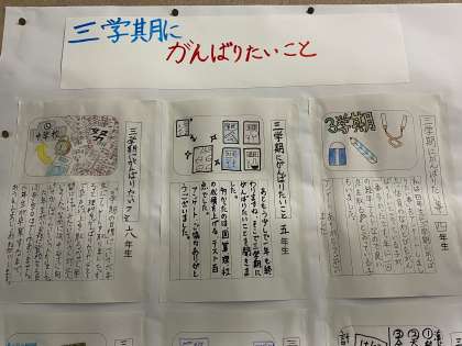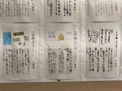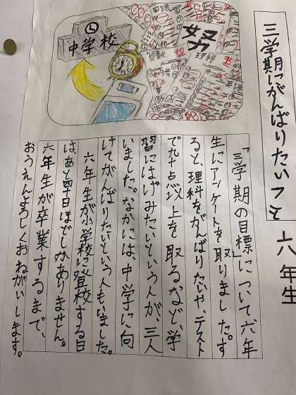 「三学期がんばりたいこと」(新聞委員会・壁新聞)