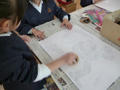 「ばれん」でていねいにこすっていき、紙にインクを付けていきます。