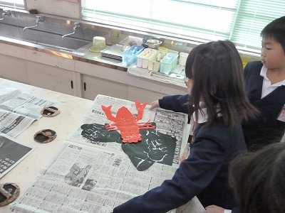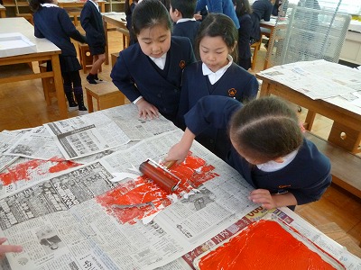 このクラスでは、全員でそれぞれの役割分担をして、流れ作業のようにスームーズに印刷を進めていっていました。