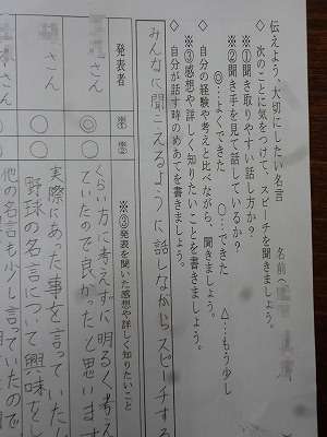 友だちの発表を聞いた後には、評価や感想もきちんと書いていきました。