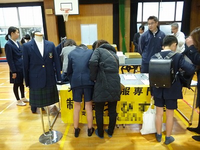 6年生は、参観・懇談会後に講堂にて、東淀中学校の制服・体操服の採寸・申し込みを行いました。
