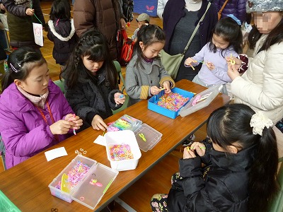 中:レインボールーム(輪ゴムを使っての飾りつくり)