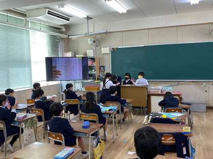 係活動のお友達が、パソコンで作った表彰状を、学級の頑張ったお友達に渡していました。