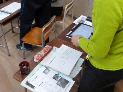 そののち、先生として、カメラ機能を使って拡大提示したいプリントや資料を撮影し教材の作成をしました。