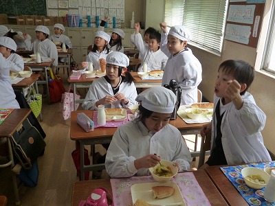 特に1年生では、歯の生え変わりのため、前歯が抜けたままの子が多く、いかを噛みきれずに、衣からいかが丸ごと抜け出てしまう子も多かったです。