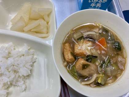 野菜たっぷりの『中華煮』です。栄養バランスを考えて食べるにはとてもよいおかずですね。