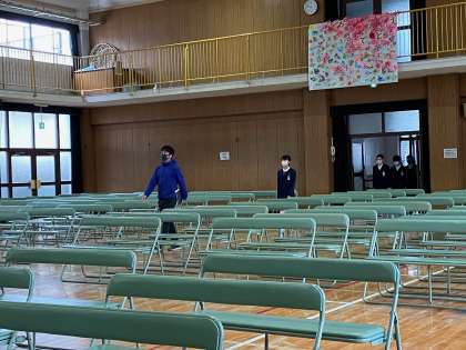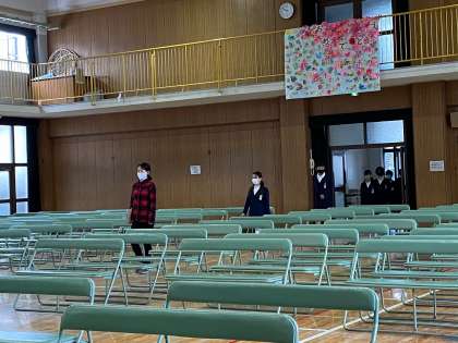 今日は卒業式の通し練習でした。少し寒い講堂ですが、緊張感を持って練習しました。