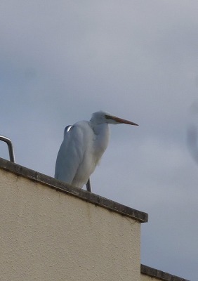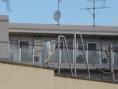 何と、羽を広げると1mほどのおおきな「サギ」が運動場にいました。
