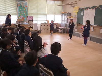まずはグループごとに、鍵盤ハーモニカ、なわとび、コマ回し、計算練習、けん玉など得意なことを披露してくれました。