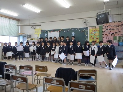 1年生では、各学級において「たのしかったね1年かん」というタイトルで、この1年の成長を見ていただきました。