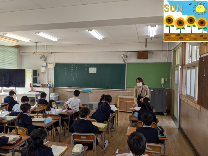 今年の3年生のテーマは、「SUN〜ひまわり〜」です。「SUN」は、えいごで「太陽(たいよう)」という意味です。