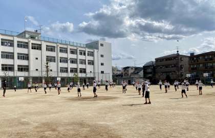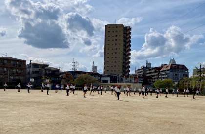 と運動場に目をやると、さっそく5年生が学年体育で、身体を動かしていました。