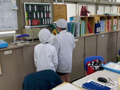 給食をいただきながら豊新小学校の簡単な紹介をしてくれました。