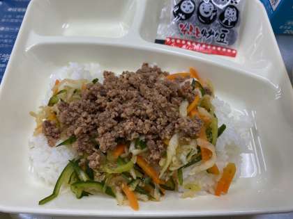 ご飯にナムルや肉などの具材を入れて混ぜて食べます。