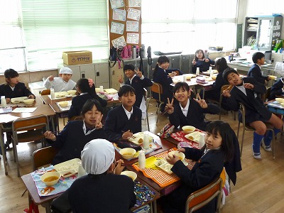 今日のメニューは「学校給食献立コンクール優秀賞作品」で、寒い冬にエネルギーアップするようにとカレー味のタンドリーチキン、たくさんの野菜を摂れるようにとスープとサラダです。