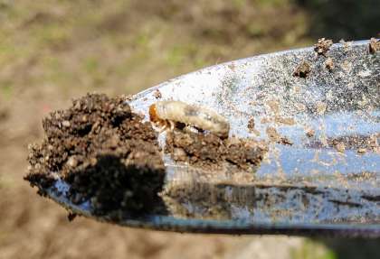 「カブトムシの幼虫みたいやけど、ちょっと小さいなあ。」