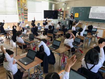 内容は、グーグルクラスルームを用いて、簡単な質問に答えたり、タイピングの練習をしています!