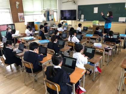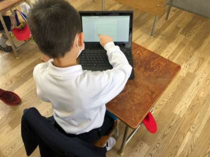 2年生では、オンライン学習が少しでも早くできるように、日々、パソコンでの学習を特訓しています!