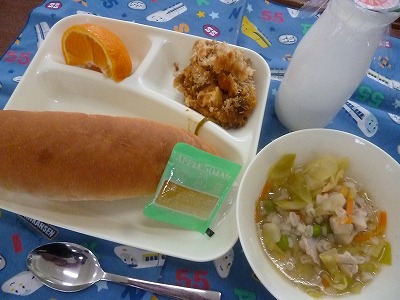 ヘルシーですが、味はしっかりと普通のミートグラタンで、子どもたちにも人気で、山盛りにお代わりを先生にお願いしていました。