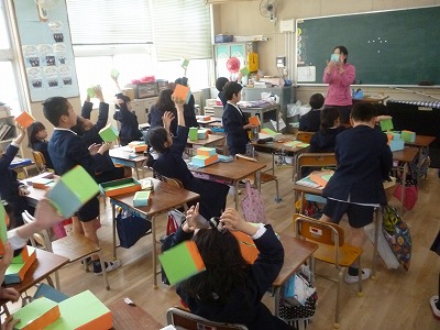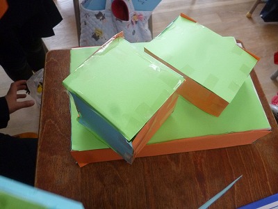 家から持ってきた小箱をもとに各面を調べとり、色画用紙で作っていきました。