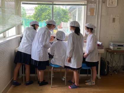 今日の当番は5年生ですが、6年生が放送機器の使い方やお話の内容を教えてくれています。