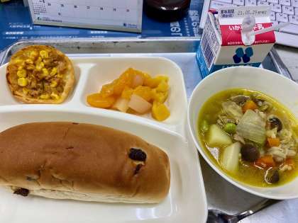 また、スープ煮もカレーの風味がほどよく豚肉や野菜が食べやすかったです。食の進む給食メニューでした。