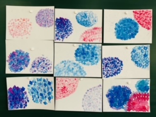 パスでぼかしの技法を使って、アジサイの花をかいています。