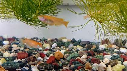 水槽の中には、かわいいメダカがスイスイ〜