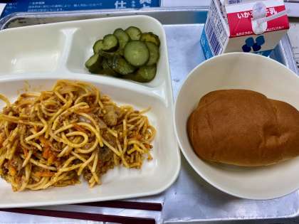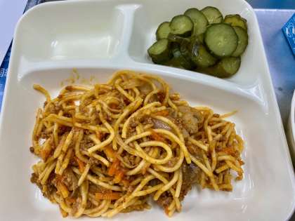 『スパゲッティミートソース』&『きゅうりのピクルス』